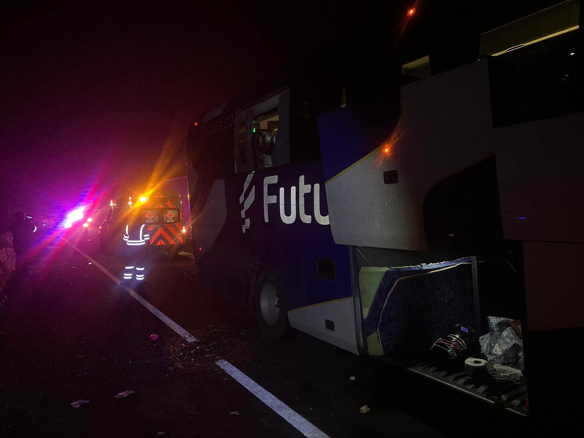 De acuerdo con el reporte de la Cruz Roja en Cárdenas, el accidente se reportó alrededor de las 3.15 de la mañana, en el kilómetro 104 de la mencionada carretera, cuando el autobús Futura chocó por alcance contra la unidad pesada, la cual transportaba estructuras metálicas.