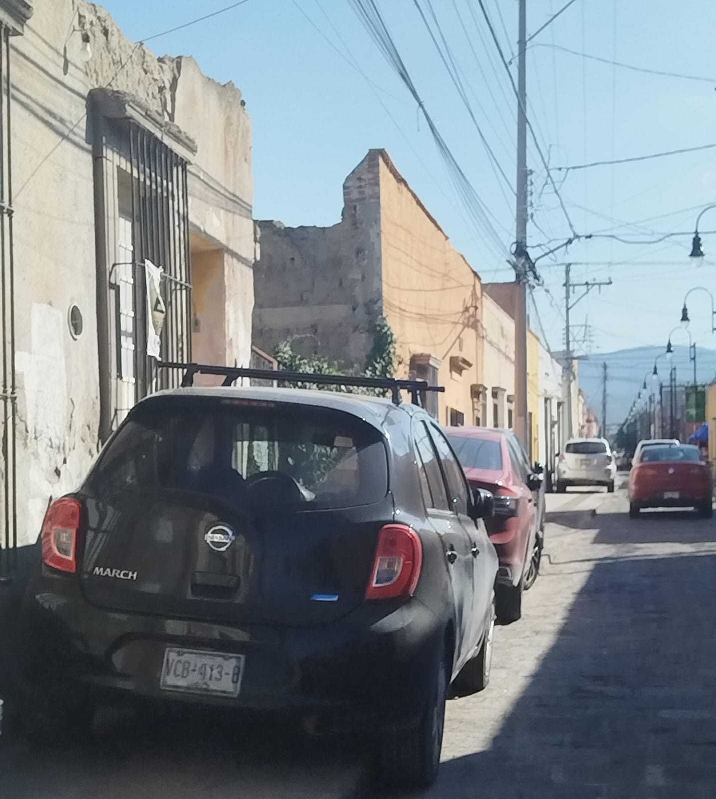 Tras el arreglo de la calle Independencia realizado por el Gobierno del Estado, ahora vecinos estacionan sus vehículos sobre las banquetas rehabilitadas.