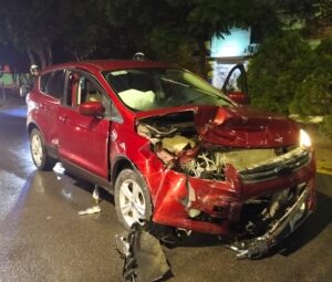De acuerdo con el reporte, los agentes municipales se encontraban en recorridos de vigilancia en avenida Salk, cuando repentinamente obsevaron una camioneta marca Ford Escape color rojo circular a exceso de velocidad, la cual impactó de frente contra la parte posterior de un vehículo sedán tipo taxi, que se encontraba en la intersección con la calle Ampere.