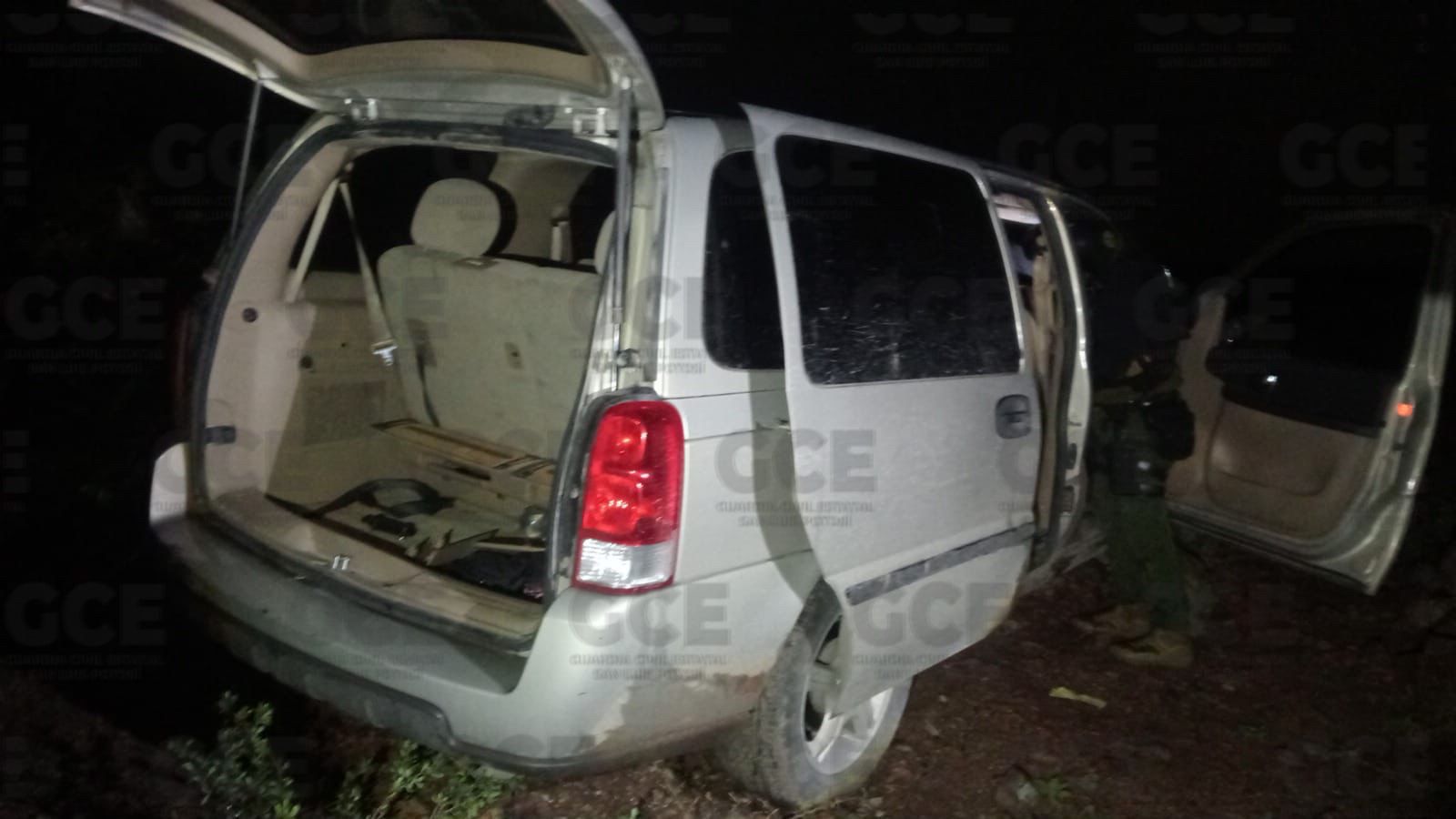 Para entonces se solicitó la presencia de la Policía de Investigación y Servicios Periciales de la FGE para el procesamiento de los indicios, quedando asegurado en el lugar una camioneta marca Ford, línea Edge, sin placas, con lo siguiente: cuatro armas de fuego largas; un arma de fuego corta; cuatro chalecos tácticos; un casco y una bolsa con objetos de varilla.