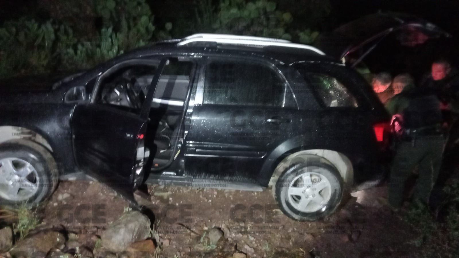 Dando seguimiento a los recorrido en la zona, se localizó una unidad marca Pontiac, tipo Torrent, color negro, posiblemente involucrada en los hechos anteriores, asegurando un chaleco táctico en su interior, con la leyenda de una supuesta red criminal, piezas de un arma de fuego larga; equipo táctico; cartuchos de diferentes calibres; cargadores; cuatro pistolas abastecidas y objetos de varilla.