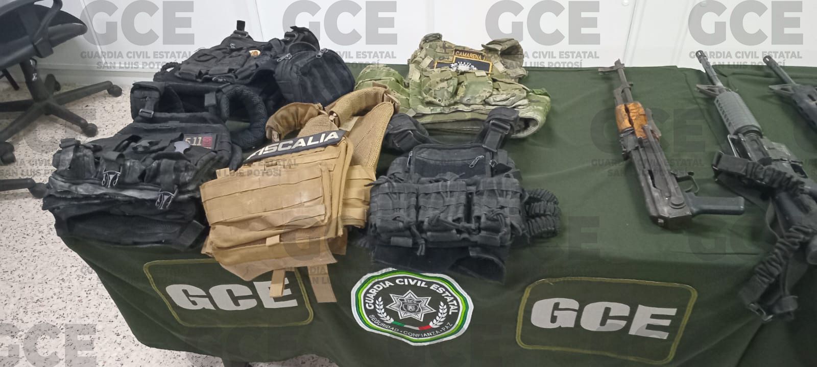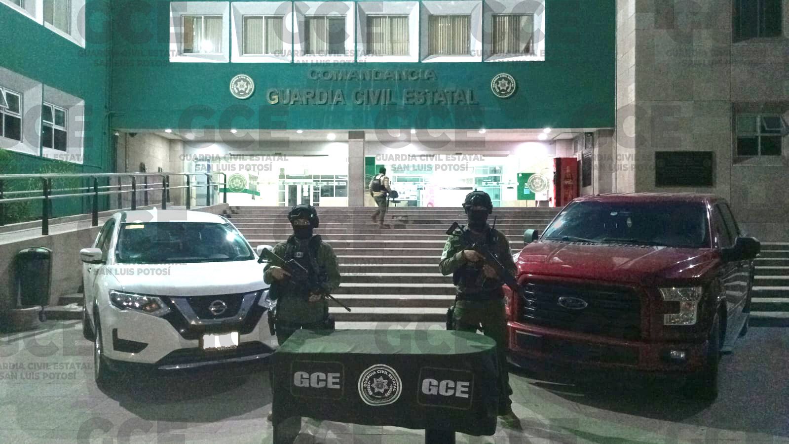 Tamasopo, S.L.P.- En una acción contundente de la Guardia Civil Estatal, como parte del Plan Integral de Seguridad, una célula criminal fue desmantelada, asegurándoles importante armamento, equipo táctico y dos unidades, una de ellas con reporte de robo.