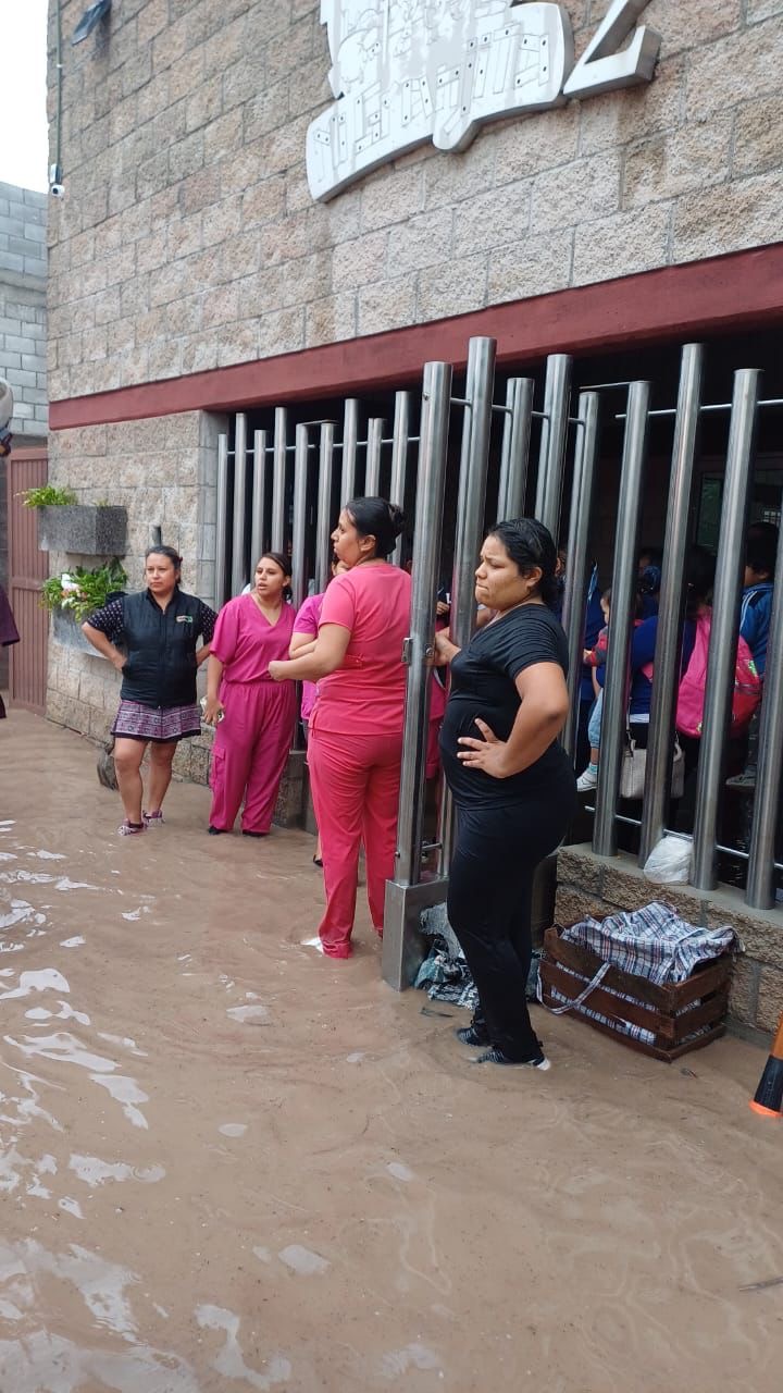 El director de Protección Civil Estatal, Mauricio Ordaz Flores, detalló que personal de la dependencia brindó auxilio y puso a salvo a niñas, niños madres y padres de familia, así como a personal de la guardería Mi Granjita quienes quedaron atrapados luego de que los niveles de agua incrementaron en la colonia Fidel Velázquez, donde se ubica este centro infantil.