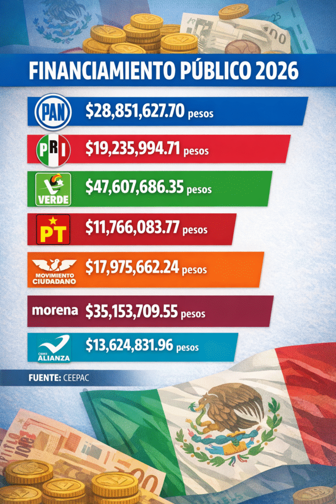 El Consejo General del Consejo Estatal Electoral y de Participación Ciudadana (CEEPAC) aprobó en sesión extraordinaria la distribución del financiamiento público correspondiente al ejercicio fiscal 2026, al que tienen derecho cada uno de los Partidos Políticos con registro e inscripción ante el Organismo Electoral.